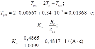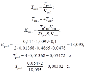 Тобто для відповідності перехідного процесу в контурі регулювання струму перехідному процесу в контурі оптимальній структурі, необхідний ПІ-регулятор струму з коефіцієнтом передачі К