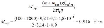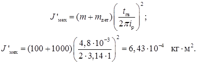 Момент інерції ходового гвинта, приведений до валу двигуна: