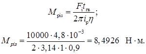 Так як двигун встановлений на ходовий гвинт, то передатне число редуктора, i