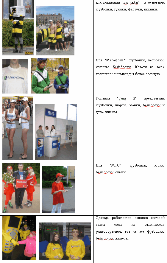 Перед нами была поставлена задача - изучить целевую аудиторию, для которой можно было бы предложить корпоративную одежду для проведения промо акций и для менеджеров – продавцов. Поэтому мы провели маркетинговые исследования с целью изучения спроса на данный вид продукции. Исследования показывают, что в нашем городе существуют более 15 операторов и салонов сотовой связи, наиболее крупные из них: "Tele2", ЗАО "Кемеровская мобильная связь", "СТеК Джи Эс Эм", ЗАО "МТС", ОАО Мобильные ТелеСистемы, "Мегафон", ЗАО Мобиком-Новосибирск, "Би Лайн", ОАО ВымпелКом, "Евросеть", "Связной", "Беталинк", "Цифроград". К сожалению, ни в одной из них, нет одежды, которая бы отличала одну компанию от другой, была бы легко узнаваема.