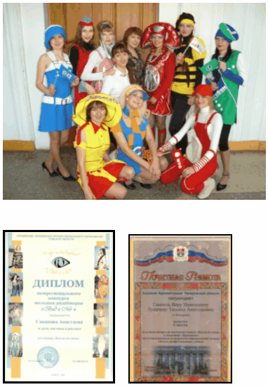 - участие в областном конкурсе "Модно, профессионально, удобно", проводимого в рамках IV Международной оптово-торговой выставки-ярмарки "Сибирская неделя текстиля и моды", коллекция заняла 1 место в номинации;