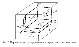 Как отмечено ранее, напряженное состояние при кручении стержня - чистый сдвиг, являющийся частным случаем плоского напряженного состояния. На площадках, совпадающих с плоскостью поперечного сечения и на парных им площадках продольных сечений возникают экстремальные касательные напряжения max-min