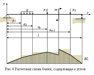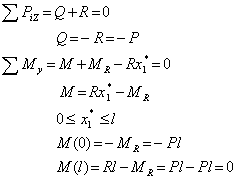 На рис.1 приведена расчетная схема бруса с произвольной комбинацией внешней нагрузки образующую равновесную систему сил:
