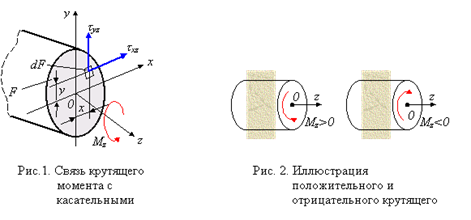 положительным, если со стороны отброшенной части стержня видим его направленным против часовой стрелки (см. рис. 2). Это правило проиллюстрировано на рис. 1 и в указанном соотношении, где крутящий момент Мz