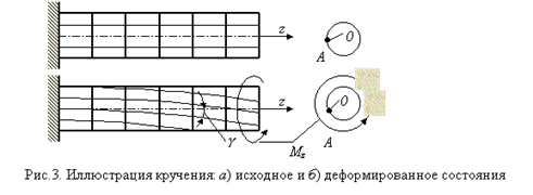 называется такой вид деформации, при котором в поперечном сечении стержня возникает лишь один силовой фактор - крутящий момент Мz