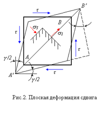 , а вследствие закона парности касательных напряжений, равные им напряжения действуют и в сопряженных продольных сечениях. Следовательно напряженное состояние стержня - чистый сдвиг