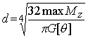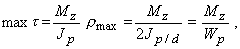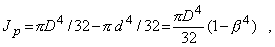 - полярный момент инерции поперечного сечения (для круга с диаметром d Jp