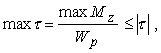 Наибольшие касательные напряжения возникают у внешней поверхности стержня, т. е. при max