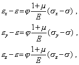 Отметим, что полученные формулы по структуре аналогичны формулам для деформаций при растяжении стержня.