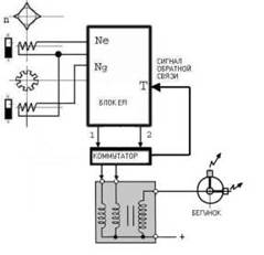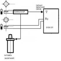 Так само слід зазначити, що вихідний транзистор комутатора розташовується, як правило, біля бобіни запалювання. Тому що він має вбудований діод у ланцюзі „колектор-емітер", це викликає деякі проблеми при його перевірці, особливо для не дуже досвідчених користувачів. Подальші схеми обробки сигналу принципово не відрізняються від приведених вище.