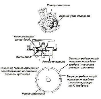 Дана схема відноситься до 4-х циліндрового двигуна. На двигунах з 6-ю циліндрами "верхній" (за схемою) датчик має 6 "виступів".