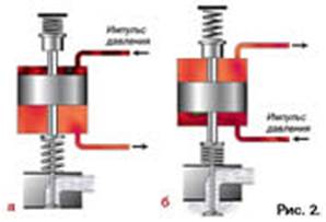 Гідравлічні імпульси лише запускають процеси відкриття (а) і закриття (б) клапана в двигуні Летше, а далі працюють потужні пружини