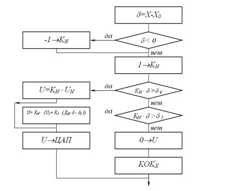 При этом необходимо выбрать конкретные значения всех параметров. Зона нечувствительности %1, обеспечивающая отсечку различных флуктуаций, равна 1 дискрета. Скачок управления U1 равен 1…3 дискретам изменения выходного напряжения ЦАП для Д = 10000, U1 =1В.