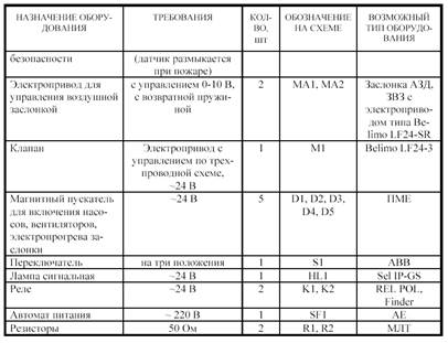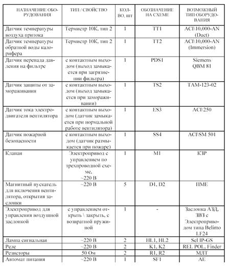 Таблица - Пример спецификации для автоматизации установки приточной вентиляции для схемы на базе МС8.2