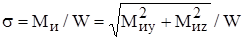Известно, что максимальные нормальные напряжения при изгибе будут в крайних волокнах и равны , где W ≈ 0,1d3