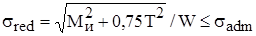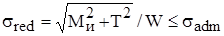 в выражения (1) и (2), запишем соответственно условия прочности вала при использовании третьей и четвертой гипотез прочности: