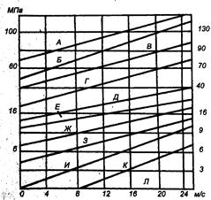 Допускаемые скорости подшипников качения при использовании пластичной смазки определяют из соотношения внутреннего диаметра d, мм и частоты вращения ω, мин-1