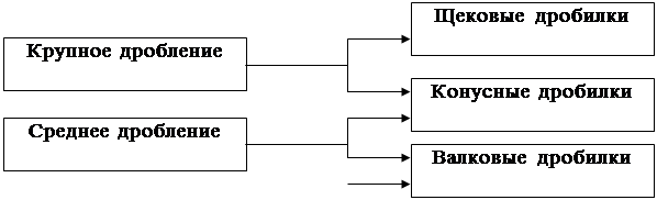 Раздавливание применяют при крупном и среднем измельчениях, истирание – при тонком измельчении.