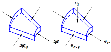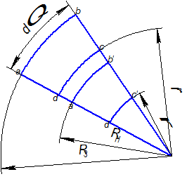 Тангенциальная деформация находится из условия равенства длин образующих.