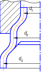 Рассматривая схему НДС определили, что цилиндрическая часть заготовки деформировалась упруго, поэтому толщина заготовки и диаметр сечения соответствует толщине и диаметру сечения детали.