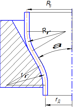 de – участок радиусного скругления пуансона.