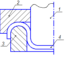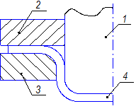 Рассмотрим процесс отбортовки плоской заготовки в осесимметричном штампе с прижимом. Условно заготовку, также как и при вытяжке, можно разбить на несколько участков.