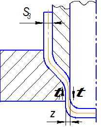 Особенностью отбортовки является еще и то, что элементы заготовки перемещаясь с плоского дна на радиус закругления испытывают момент сопротивления изгибу .