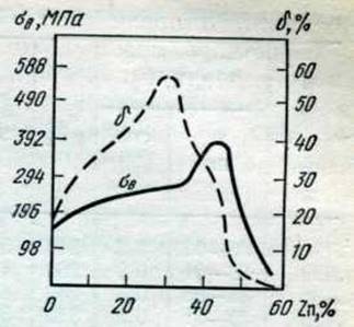 Рисунок 6.3 Влияние цинка на механические свойства латуни