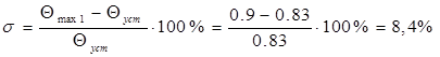 Перерегулирование характеризует запас устойчивости системы. В нашем случае запас устойчивости достаточен. Для переходных процессов по возмущающему воздействию определяем максимальное отклонение регулируемой величины от установившегося значения, приходящееся на единицу возмущающего воздействия.