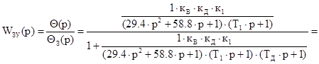 на нагревательном элементе (управляющее воздействие на объект) пропорционально величине отклонения температуры Θ в теплице от заданного значения ΘЗ