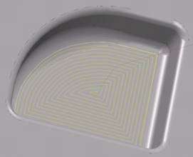 - набор стратегий спиральной и эквидистантной обработки зон, как на чистовой, так и на черновой обработке и поиск оптимальной стратегии в различных зонах обработки, а также автоматическое сглаживание траекторий в углах.