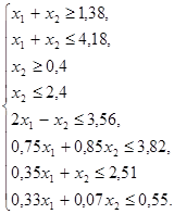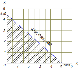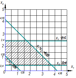 На графике (см. лист графической части №) построим сис-тему ограничений и целевую функцию.