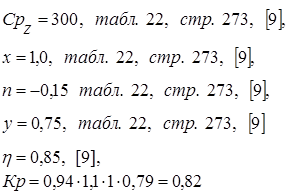g- коэффициент, учитывающий способ установки заготовки, принимаем g=3 (для установки заготовки в патроне);