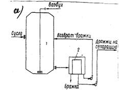 Практически этот вариант работы осуществляется путем возврата части бражки из флотатора в инокулятор (рис. 3,а)