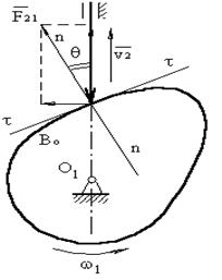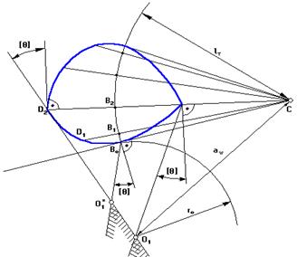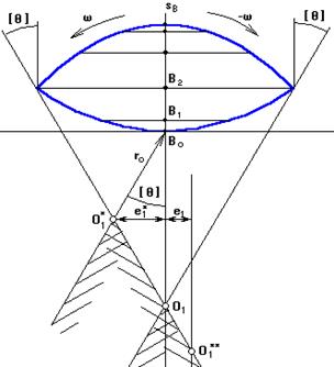 Якщо реверс не враховувати, то другий промінь проводять через т.Во під кутом [θ]. Центр кулачка буде в т.О1