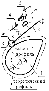 Крім того, радіус ролика повинен бути таким, щоб при побудові профілю кулачка не було загострення у вершині кулачка. Вибравши радіус ролика, з будь-яких точок теоретичного профілю кулачка (чим частіше, тим краще) проводять дуги окружності r=rp
