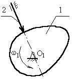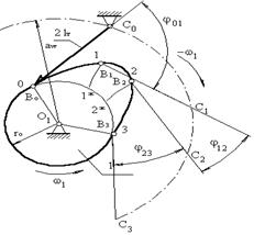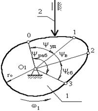 ділится на 10 рівних частин. В кожній із позицій 1,2… проводиться положення осі штовхальника в зверненому русі, при цьому вісь штовхальника, переміщаючи в напрямку (–ω1