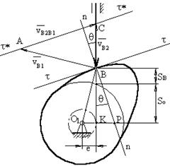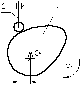 (перетинання осі штовхальника, що відстає на величину е від точки О1