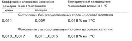 Размер фотопленки: 500 мм Изменение влажности в%: увеличение на 4% Изменение температуры в °С: увеличение на 2 °С Изменение размера = (500 мм хО.0009/100x4) + (500 мм х х 0,0018/100 х 2)= 0,018 мм + 0,018 мм = 0.036 мм