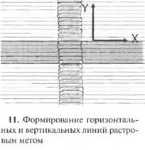 Растровый принцип формирования изображений полностью подобен воспроизведению рисунка на экранах мониторов: телевизоров, компьютеров и т.д. Построчно бегающий луч модулируется по яркости, поэтому на изображении появляются светлые и темные элементы.