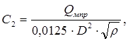где: Qмпр - верхний предел измерения дифманометра для массового расхода; ρ- плотность среды в рабочих условиях; D - внутренний диаметр трубопровода перед сужающим устройством при температуре t.