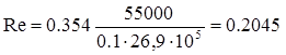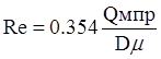 4.1.4 Определяем число Рейнольдса и проверяем условие Re > Remin, при выполнении которого расчёт продолжается. Если Re < Remin, то при принятых параметрах расходомера измерение данным методом невозможно.