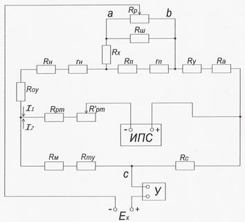 На рис. 4. изображена измерительная схема автоматического потенциометра КСП 4, являющейся типовой для измерения ЭДС или напряжений, протекающий через схему ток выбран 5мА: в верхней измерительной ветви и в нижней вспомогательной ветви .