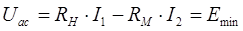 4.2.6 Сопротивление RН определяет нижний предел измерения или начало шкалы и находится, исходя из следующих соображений. При температуре контролируемой среды tminдвижок реохорда находится в точке а, т.е. в начале шкалы прибора, и ЭДС термопары Еmin компенсируется падением напряжения Uac в точках а – с измерительной схемы