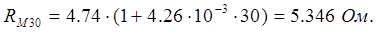 4.2.9. Сопротивление медной катушки для средней температуры окружающей среды 30ºС находим по формуле: