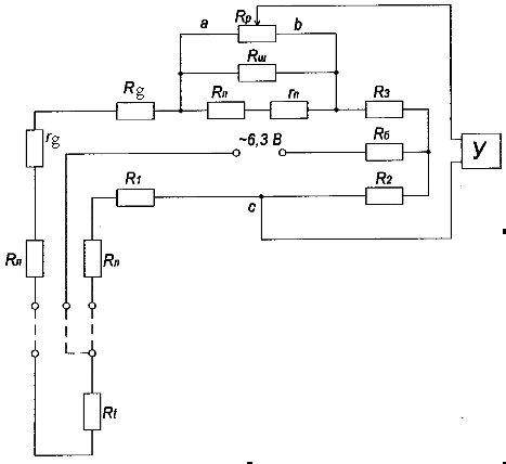 4.3.4 Сопротивление Rg определяет начало шкалы прибора, а rg – подгоночное сопротивление в виде спирали, являющейся частью сопротивления Rg. Последнее выбирается равным 5-10 Ом.