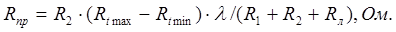 4.3.7 Приведённое сопротивление Rпр цепи реохорда (Rр, Rш, Rп) определям по формуле, полученной путём совместного решения уравнений равновесия мостовой измерительной схемы для двух крайних отметок шкалы: