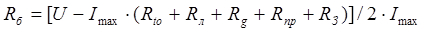 4.3.9 Балластное сопротивления Rб в цепи питания служит для ограничения тока в плечах измерительной схемы и рассчитывается из условия, чтобы максимальный ток Imax, проходящий через термометр, не превышал 7 мА.