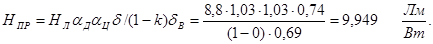 ΔН = Нном – Нл = 6,7 – 9,56 = 0,14 лм/Вт.
