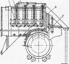 1 – кессон – коллектор; 2 – кессон боковой; 3 – пневмоцилиндр; 4 – передняя стенка; 5 – заслонка передвижная.